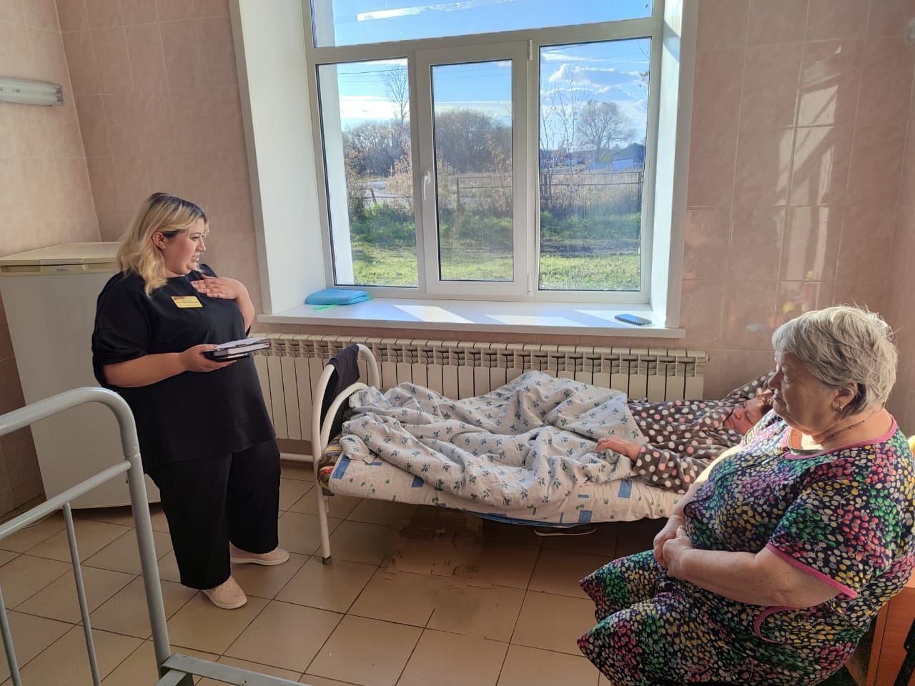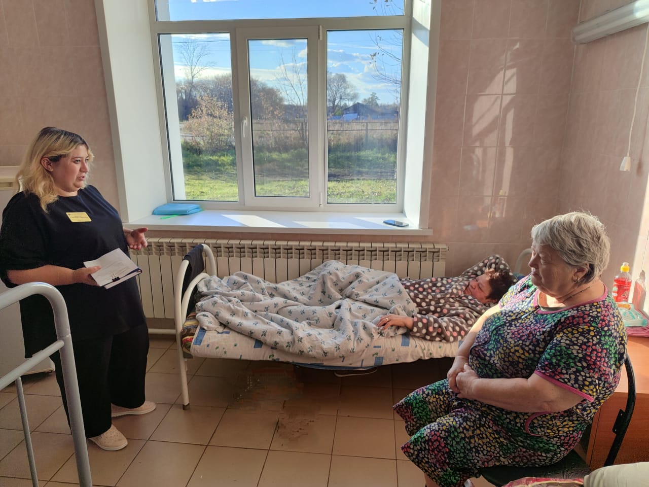 Психолог А. А. Дружкова егде жастағы науқастар емделетін терапия бөлімшесінің палаталарына барды. Ақыл-ой денсаулығын сақтаудың, позитивті көзқарас пен белсенді өмірлік ұстанымды сақтаудың маңыздылығы туралы әңгіме жүргізді. Кездесу барысында эмоционалды әл-ауқатты нығайту жолдары және қарым-қатынастың, өзін-өзі қолдаудың және күнделікті өмірге қатысудың маңыздылығы талқыланды.
