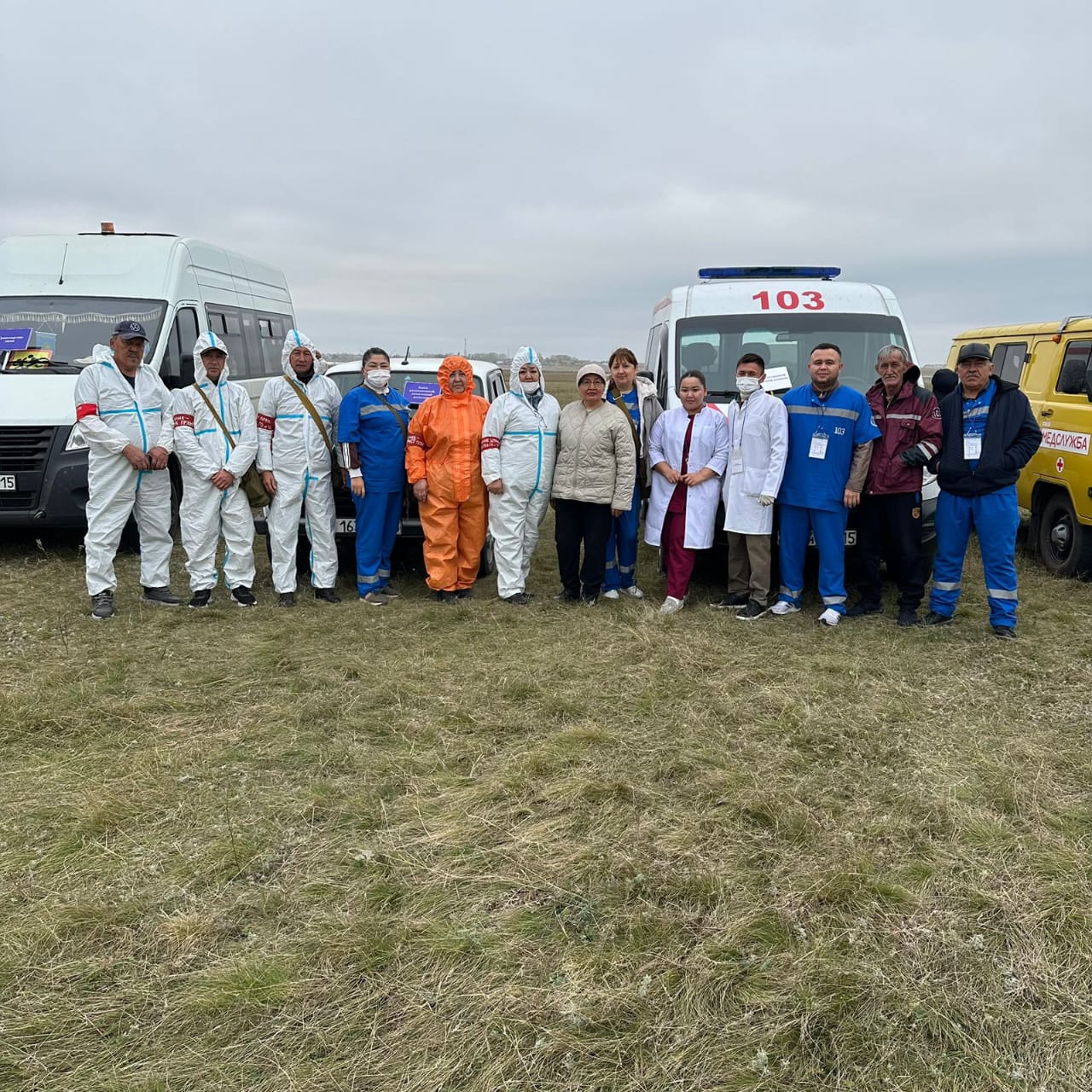 в Жамбылском районе по теме «Действия органов управления, комиссии по ЧС по предупреждению и ликвидации последствий ЧС в пожароопасный период и выполнение мероприятий гражданской обороны» Принимали участие две БСМП для оказания помощи условно пострадавшим в результате вводного пожара степного и лесного массива.
