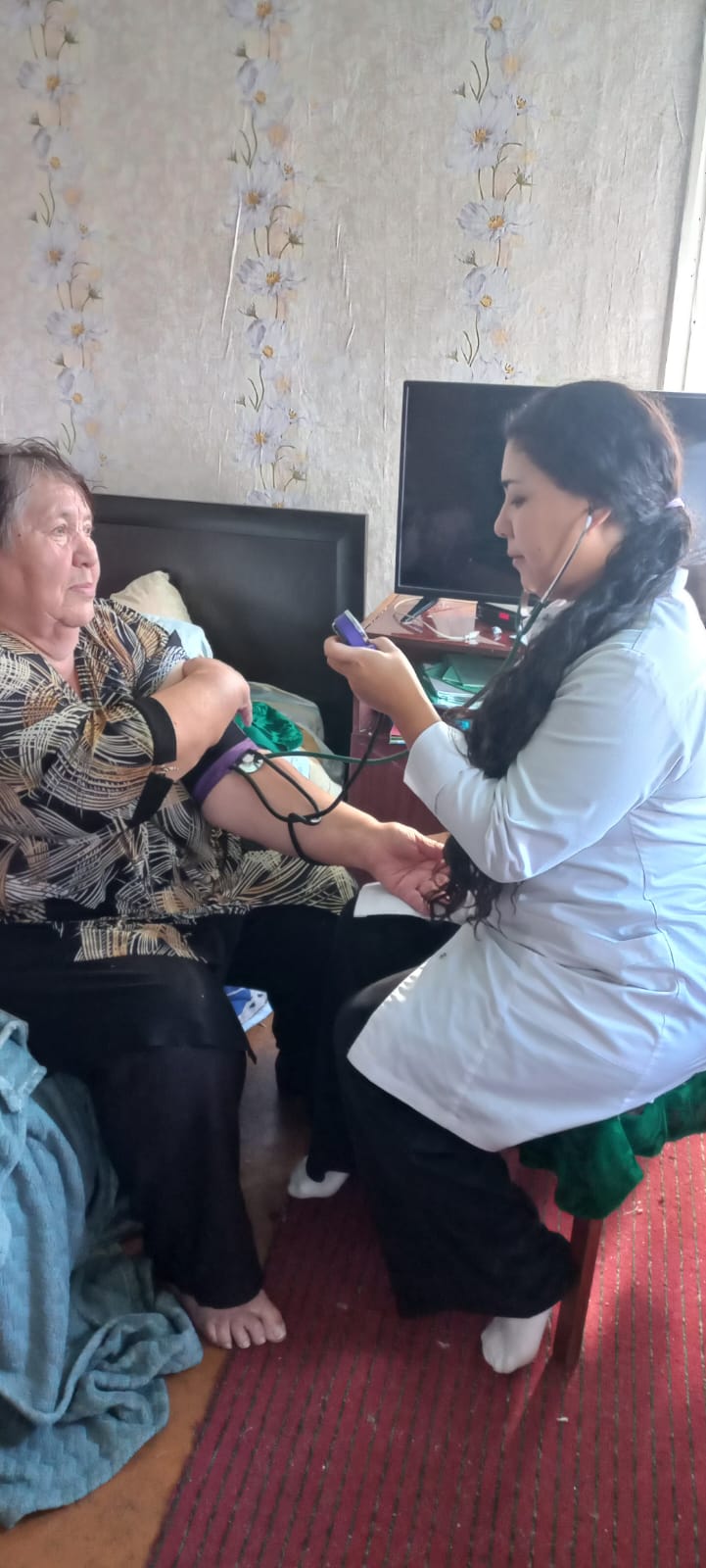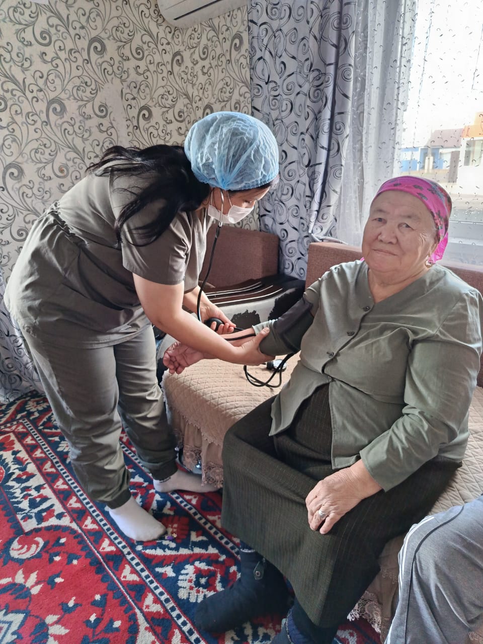 2 октября 2025 года медицинскими работниками КГП на ПХВ «Жамбылская районная больница» осуществлён выезд на дом к пенсионерам с целью проведения осмотра состоящих на диспансерном учёте пациентов и обеспечения их лекарственными препаратами.