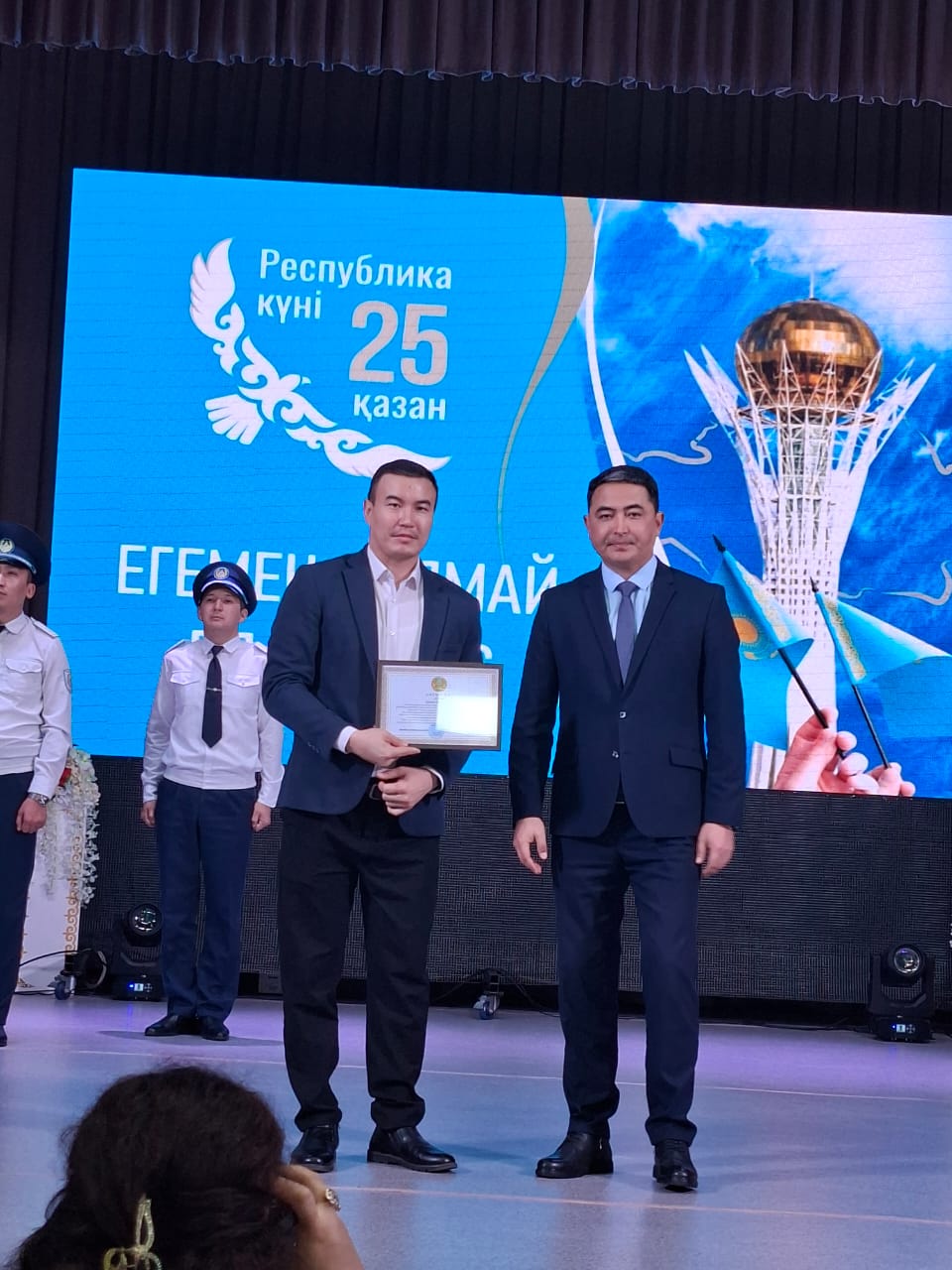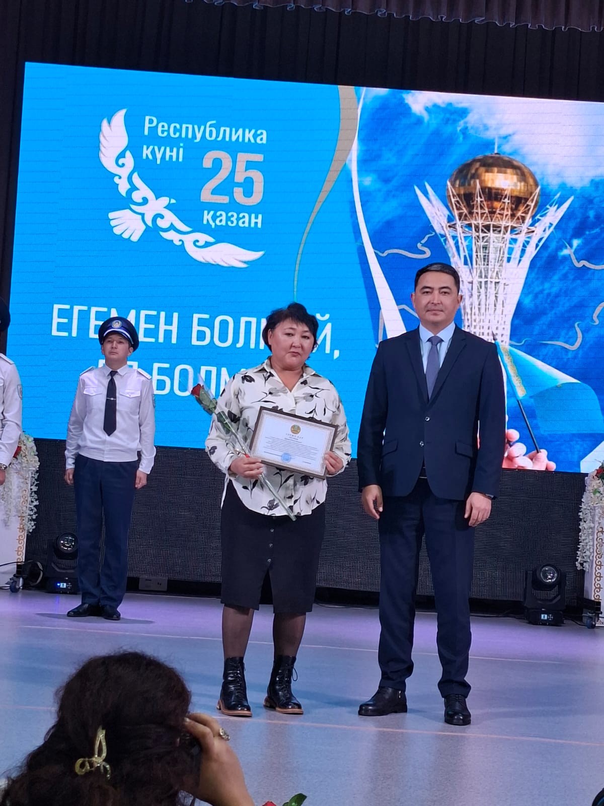 В преддверии праздника «День Республики» состоялось торжественное мероприятие, где аким Жамбылского района Бектасов А.Б., вручил благодарственное письмо за заслуги и вклад в развитие страны заместителю директора по лечебной работе Лезбаеву А.Г., Айкеновой Ш.У. медицинской сестре ПМ Мирное.