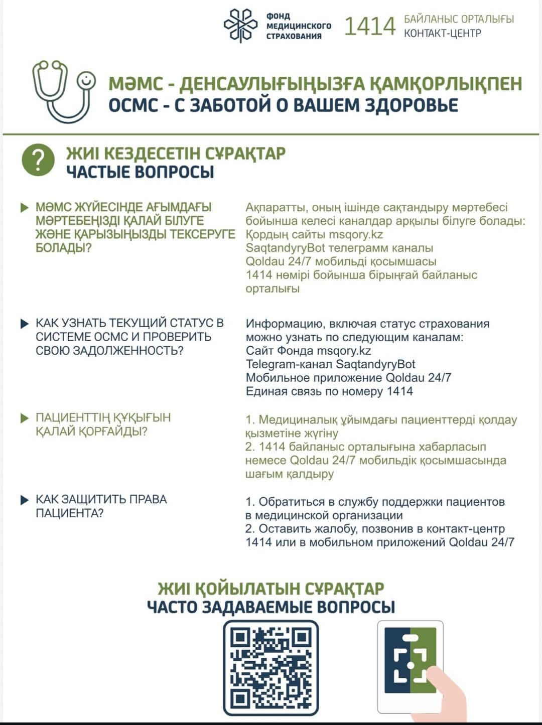 Кроме того, напоминаем что в филиале по СКО НАО «Фонд социального медицинского страхования» организован кабинет приема граждан.