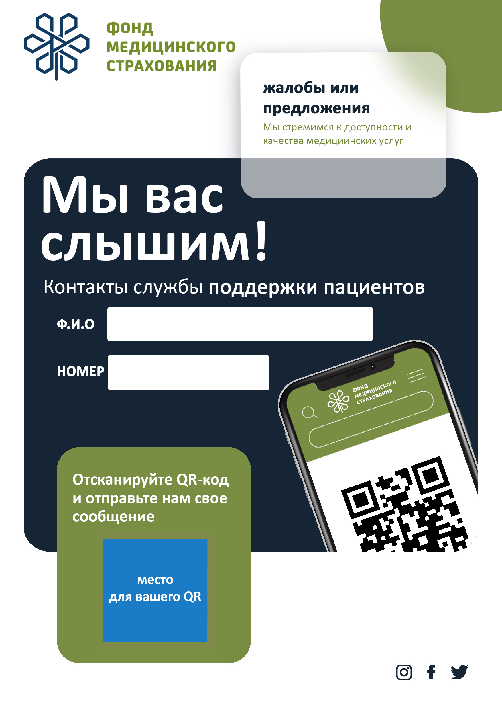 Если у вас есть какие-либо дополнительные вопросы или возникли проблемы с получением медицинской помощи, вы можете обратиться в «Службу поддержки пациентов» в своей клинике. Если разрешить ситуацию на месте не удалось, можно направить обращение в Фонд социального медицинского страхования удобным для вас каналам связи: